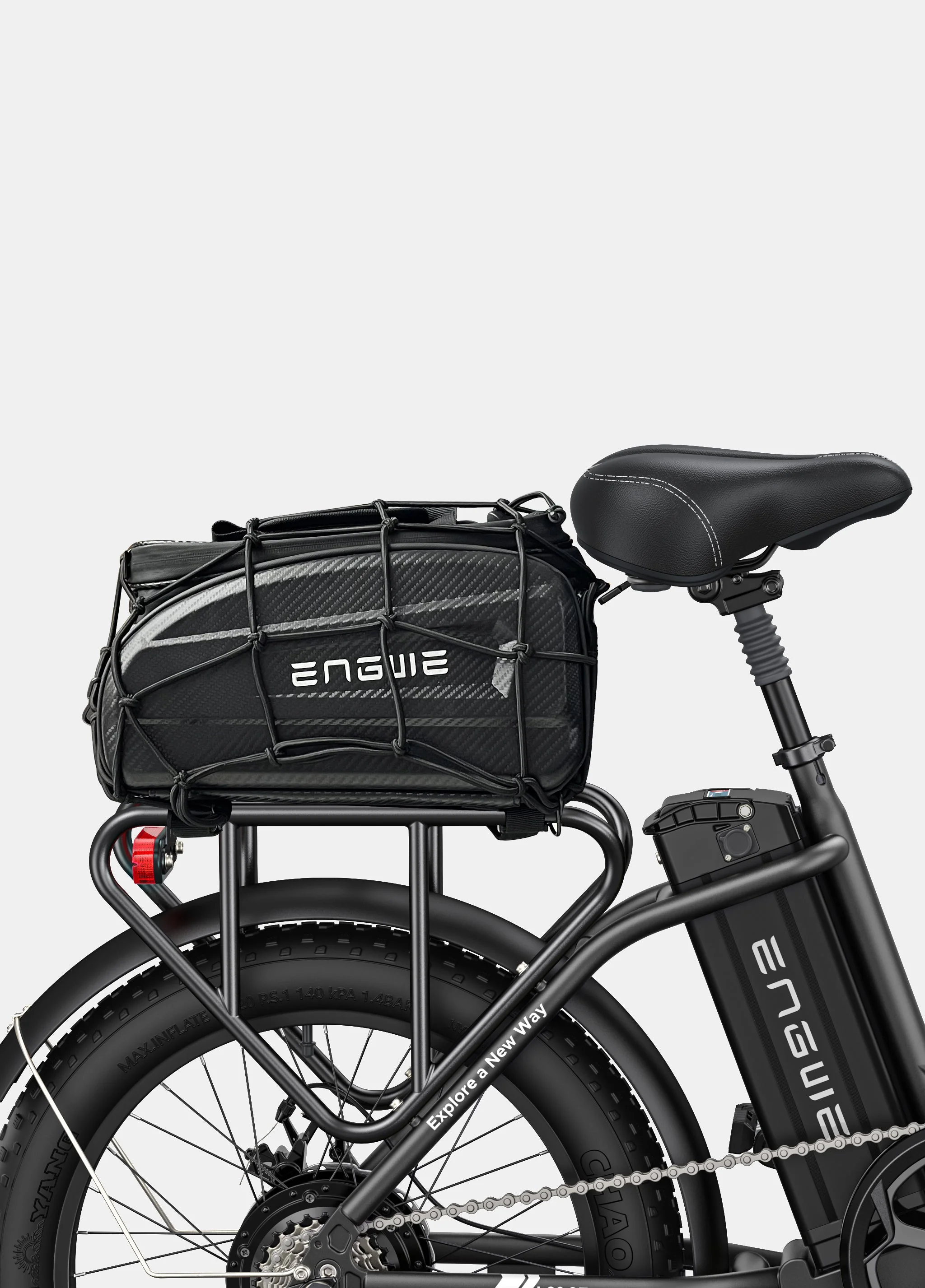 La red de carga ENGWE es el accesorio perfecto para tus aventuras ciclistas, diseñada para sujetar tus pertenencias de forma segura. Fabricada con materiales duraderos, proporciona un soporte fiable para transportar objetos, asegurándose de que se mantengan seguros y estables durante el recorrido. Ideal para llevar la compra, bolsas o cualquier artículo esencial, la red de carga ENGWE es imprescindible para los ciclistas que buscan comodidad y tranquilidad en sus desplazamientos.