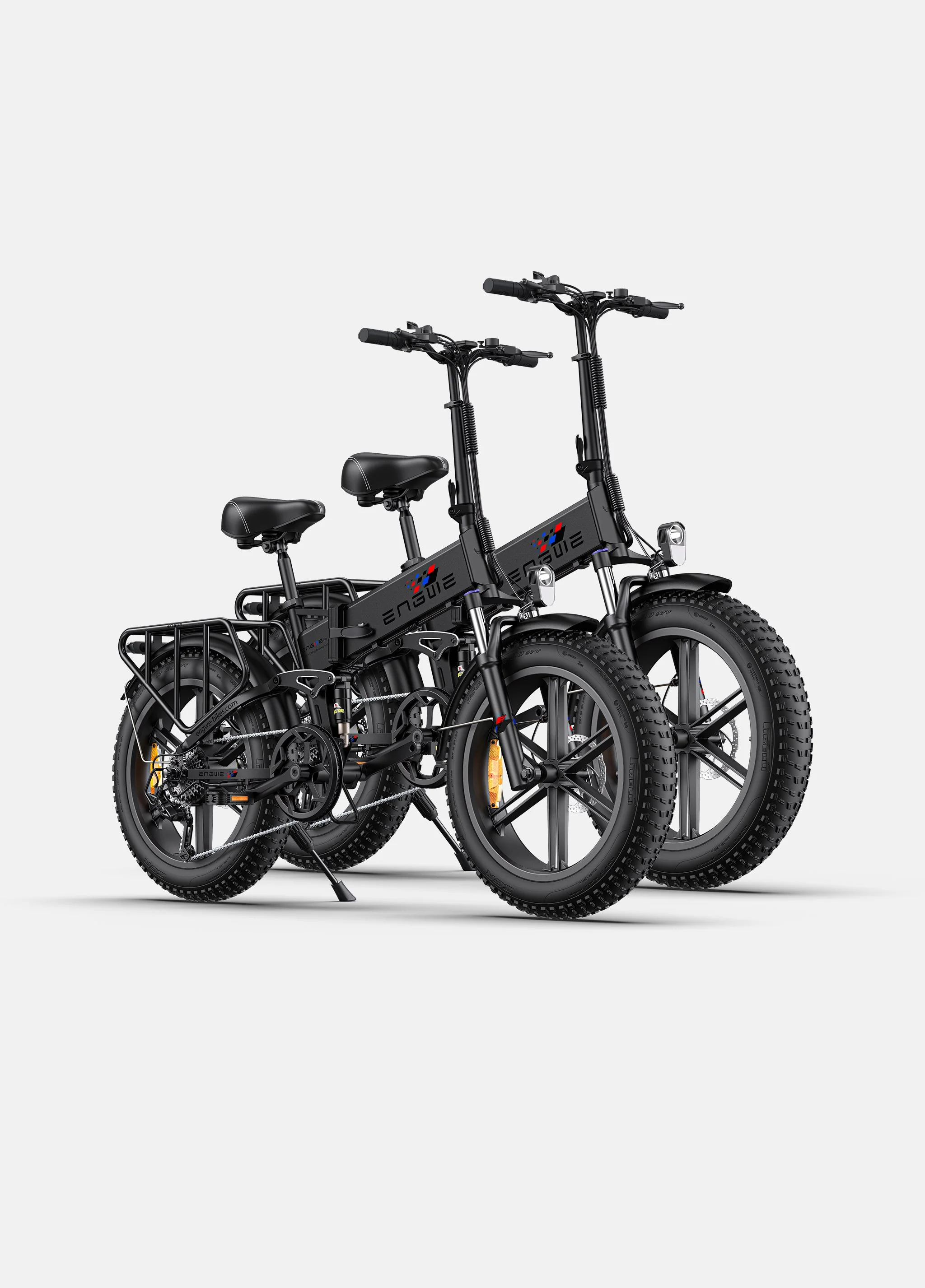 La ENGWE Engine X es una bicicleta eléctrica plegable versátil y potente, diseñada tanto para aventuras urbanas como fuera de carretera. Cuenta con un motor de 250W que ofrece una potencia suave y eficiente, un sistema de suspensión completa para mayor comodidad en terrenos irregulares, y neumáticos gruesos de 20x4.0 pulgadas que proporcionan una excelente estabilidad y agarre. Equipado con una transmisión Shimano de 7 velocidades, esta bicicleta eléctrica de neumáticos gruesos ofrece cambios de marcha suaves, facilitando la superación de diversas pendientes con facilidad.